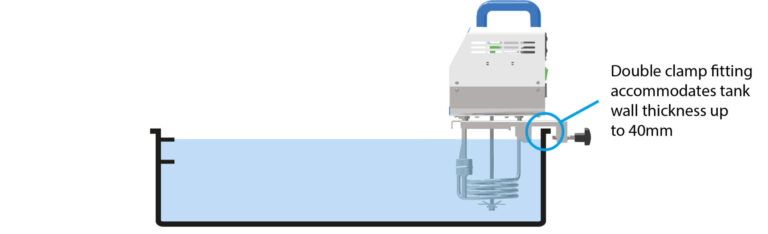 | Tank Mounting (mm) | Double clamp fitting accommodates tank max wall thickness 40mm |